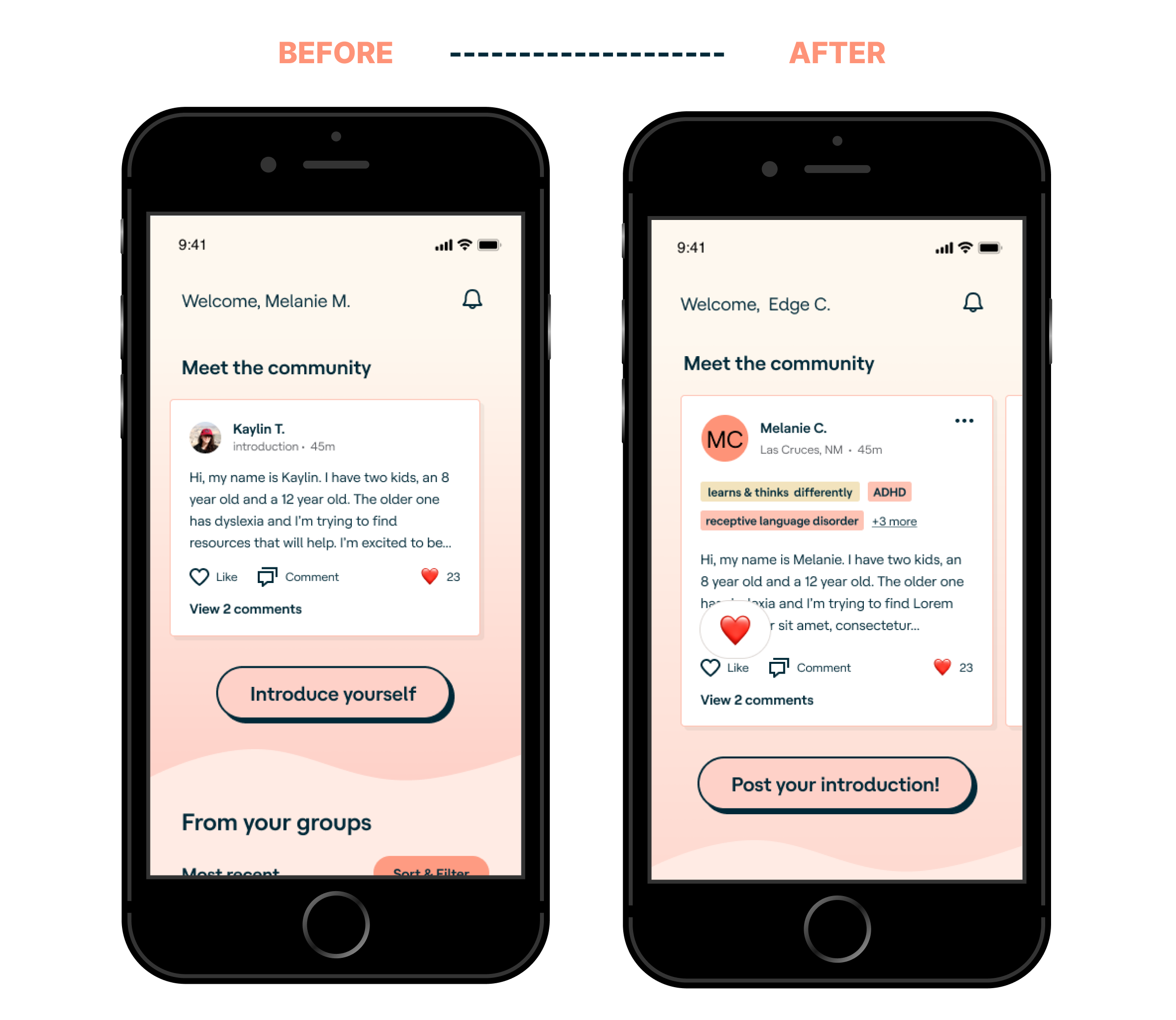 This is an experiment I designed for the Wunder app by Understood (now referred to as the Understood app). Wunder is a community app for parents and caregivers of children who learn and think differently (LTD). The primary goal of the design brief was to increase engagement with a (pre-existing) module in which users post self-introductions to the community; the product achieved this with a lift of 159%.